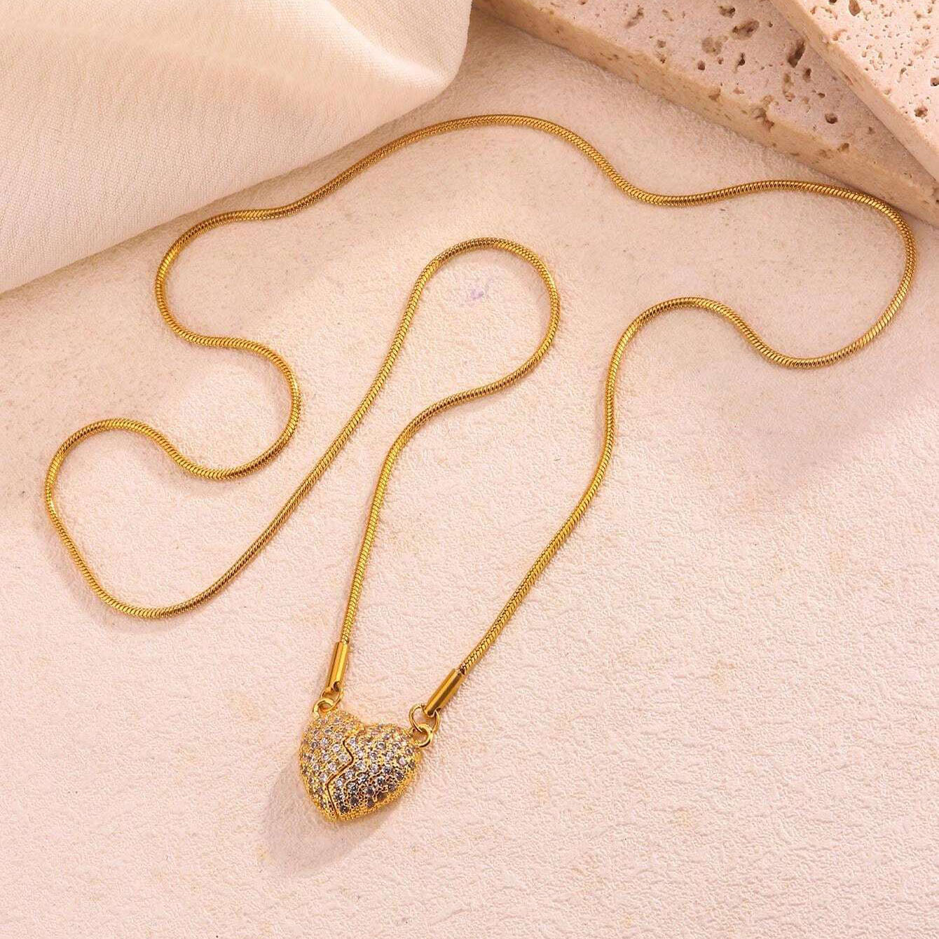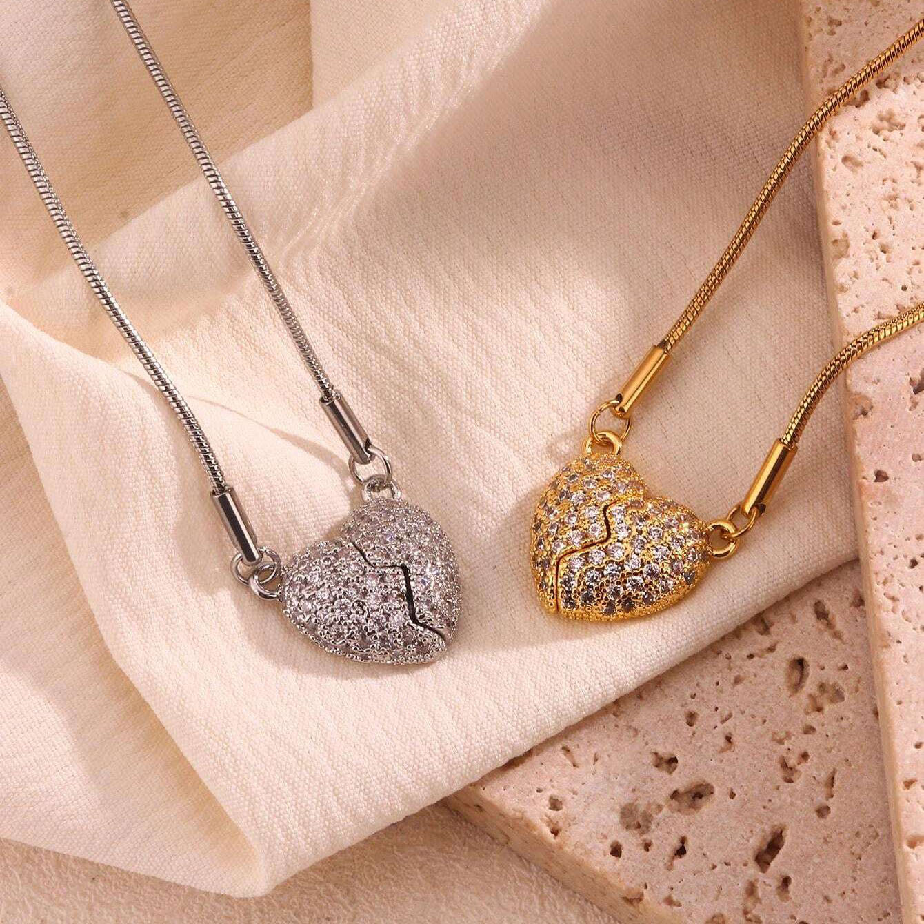 Avec ce magnifique collier, vous n'aurez plus jamais besoin de vous demander "OÙ EST L'AMOUR" 💘. Ce bijou n'est pas seulement un accessoire, il est une déclaration d'amour 💕. Le pendentif en forme de cœur, scintillant de mille feux grâce à ses pierres éclatantes 💎, symbolise deux âmes liées par un amour indéfectible.